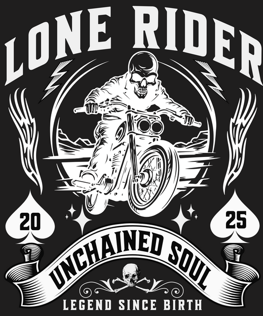 Biker T-Shirt Round Neck Half Sleeve (Lone Rider, Unchained Soul)