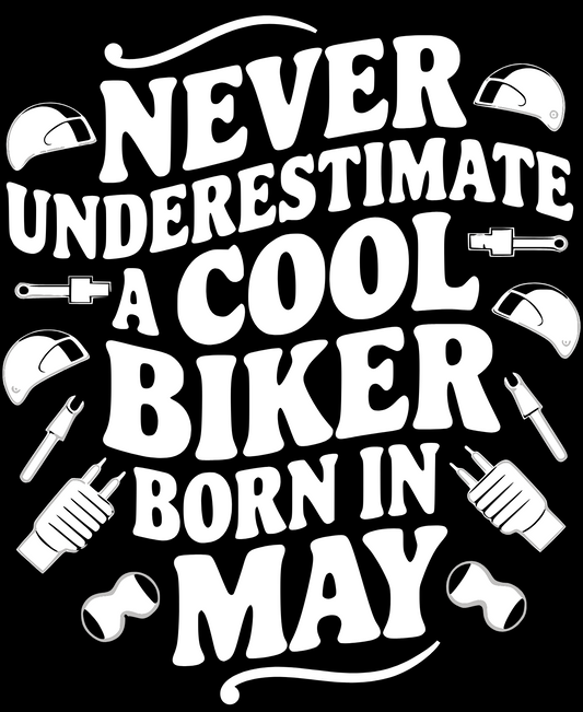 Biker Birthday T-shirt Round Neck Half Sleeve (Never Underestimate a cool biker born in May)