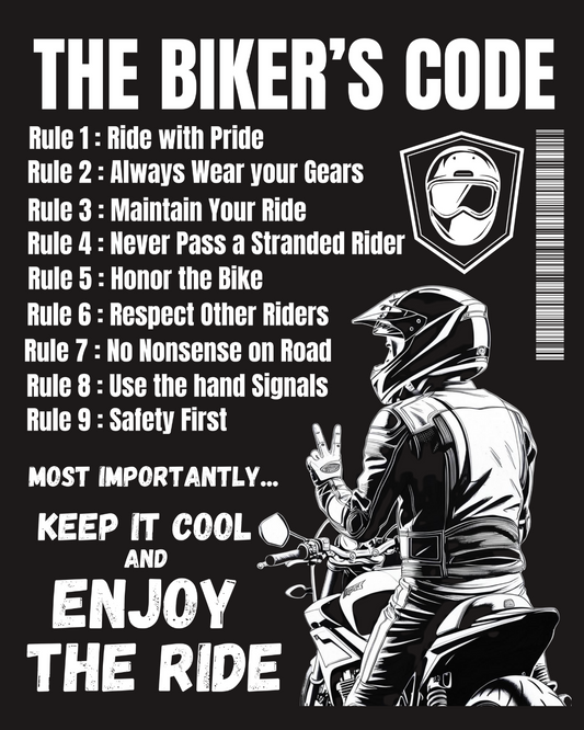 Round Neck Half Sleeve Biker T-Shirt (The Bikers Code)