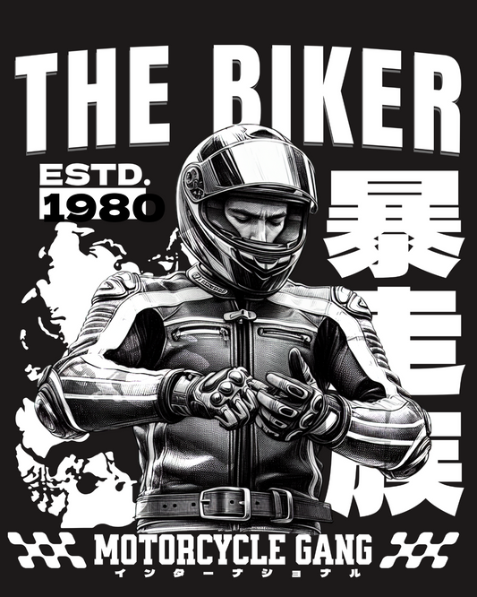 Round Neck Half Sleeve Oversized Biker T-Shirt Back Side Print(The Biker Motorcycle Gang)