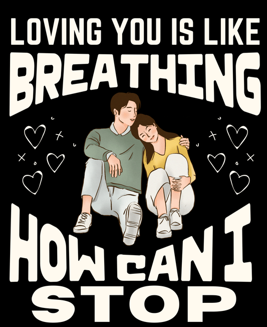 Round Neck Half Sleeve Couples T-Shirt (Loving You is like breathing)