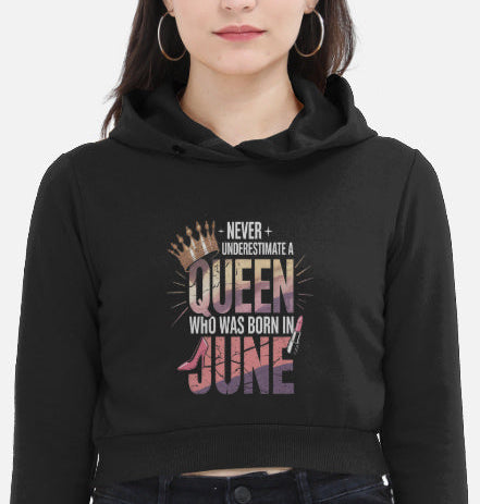 June Birthday Female Cropped Hoodie (Never Underestimate A Queen)