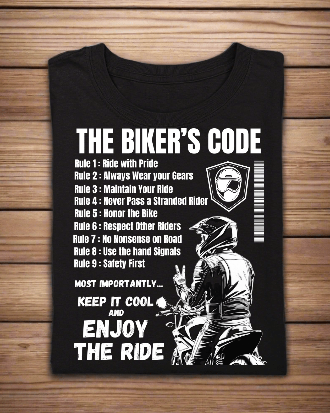 Round Neck Half Sleeve Biker T-Shirt (The Bikers Code)
