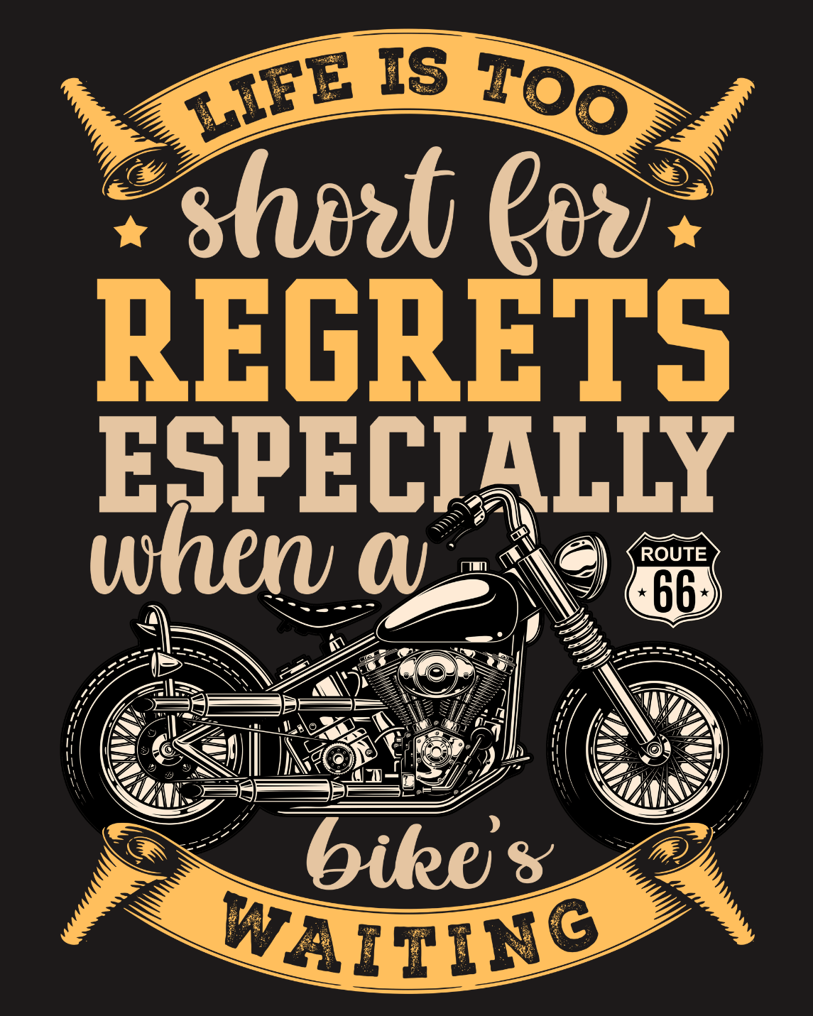 Round Neck Half Sleeve Biker T-Shirt (Life is too short for regrets)